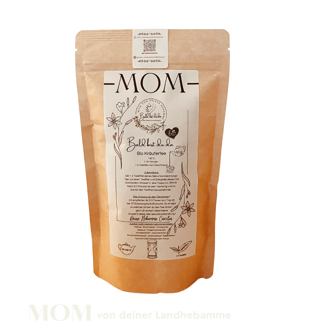„Bald bist du da“ ist ein liebevoll abgestimmter Bio-Kräutertee, entwickelt nach meiner traditionellen Hebammenrezeptur und in einer kleinen Hamburger Manufaktur schonend von Hand gemischt.