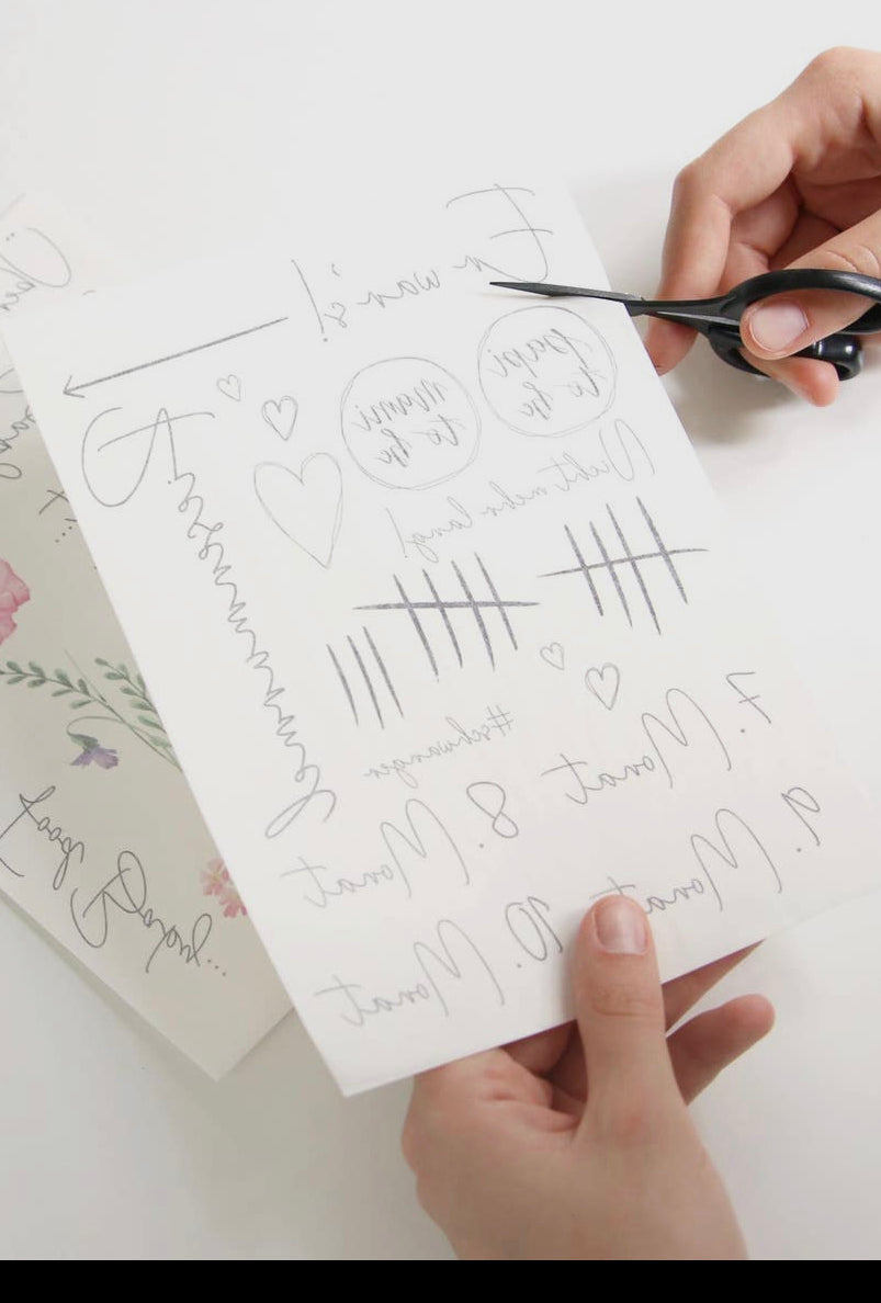 Die Anwendung ist simpel: Einfach das gewünschte Motiv ausschneiden, auf die entsprechende Körperstelle auflegen und mit einem feuchten Tuch oder Schwamm betupfen.